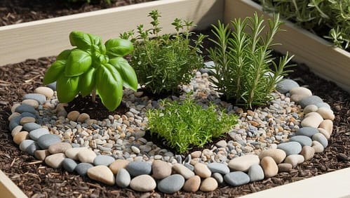 When designing your herb garden, choose herbs that are compact and easy to manage. Basil, thyme, and rosemary are perfect candidates for a small-scale setup, adding both fragrance and flavor to your cooking. The mini pebbles you scatter around the plants not only look great but also help define the space and keep the soil in place.